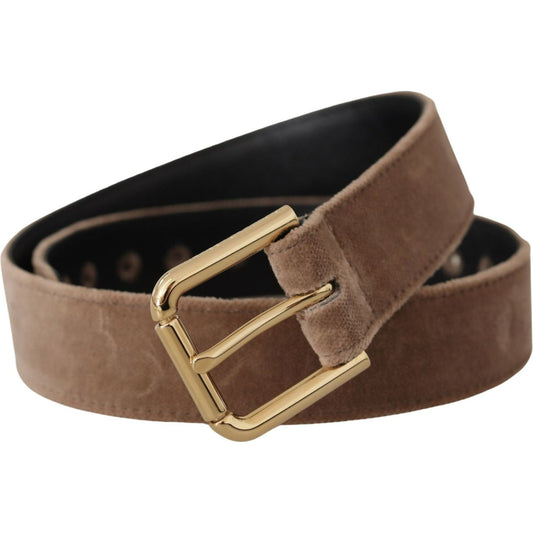 Dolce & Gabbana Light Brown Velvet Gold Tone Logo Metal Buckle Belt