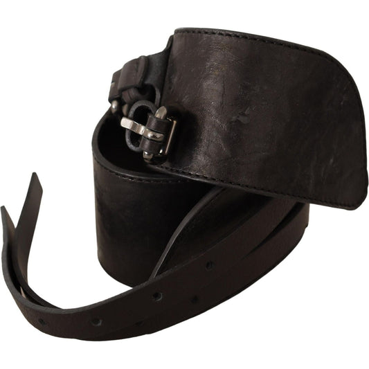 Costume National Black Leather Metal Buckle Waist Belt