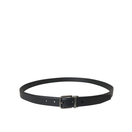 Dolce & Gabbana Black Leather Silver Metal Buckle Men Belt