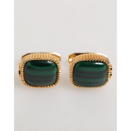 Dolce & Gabbana Gold Malachite Green Stone Square Men's Accessory Cufflink