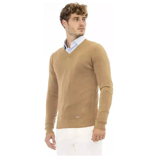 Trussardi Action Beige Cotton Men V-neck T-shirt