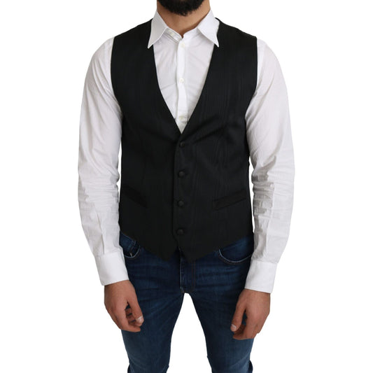 Dolce & Gabbana Gray Striped Wool Single Breasted Vest