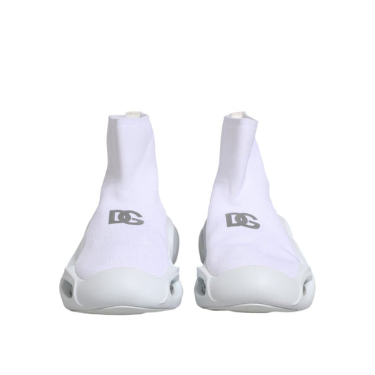 Dolce & Gabbana White Silver Slip On Wave Socks Sneakers Shoes