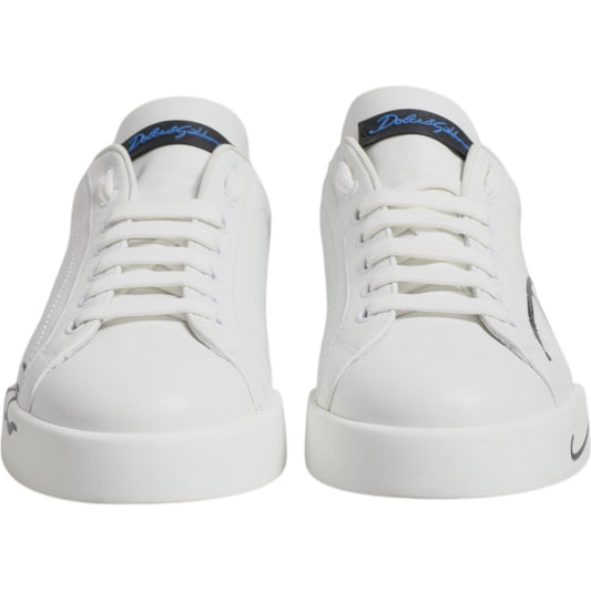 Dolce & Gabbana White Leather Logo Portofino Sneakers Shoes