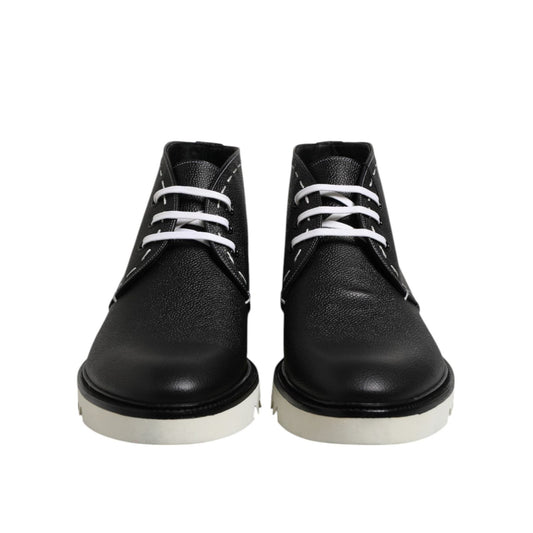 Dolce & Gabbana Black White Leather Ankle Boots Shoes