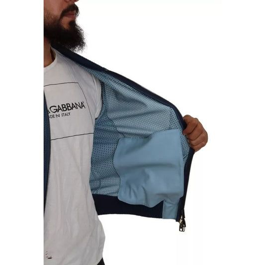 Dolce & Gabbana Blue Leather Perforated Full Zip Jacket