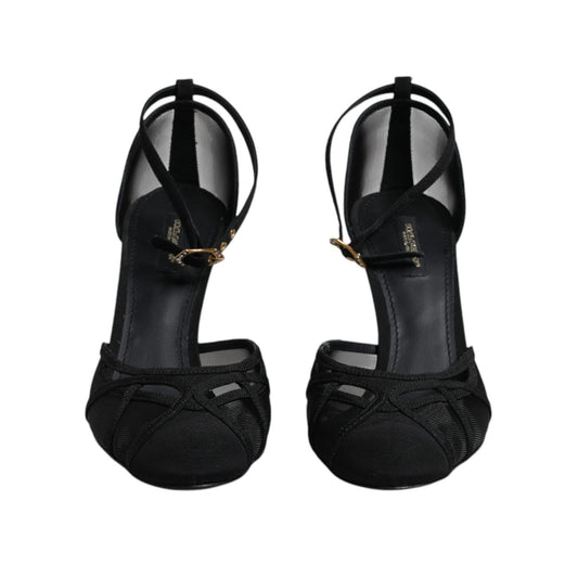 Dolce & Gabbana Black Mesh Ankle Strap Heels Pumps Shoes