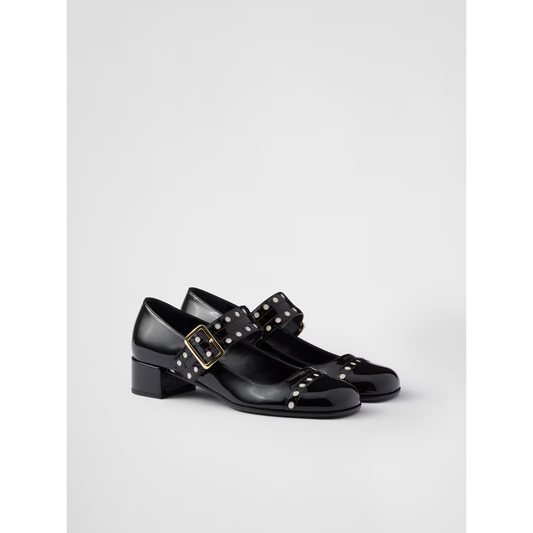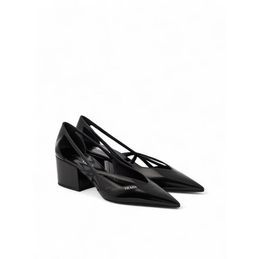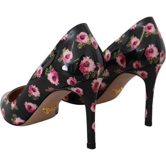 Prada Black Patent Sandals Ankle Strap Heels Leather
