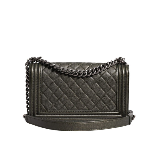 Chanel Dark Green Leather Shoulder Bag Gray Metal Purse Bag