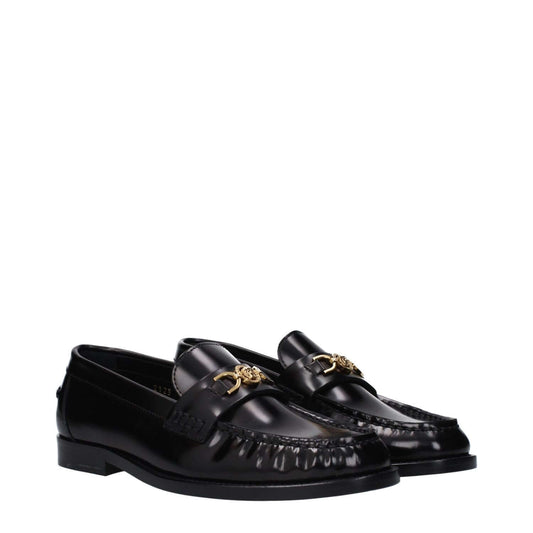 Versace Black Leather Logo Plaque Slip On Slides Flats Shoes