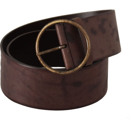 Dolce & Gabbana Dark Brown Wide Calf Leather Logo Round Buckle Belt