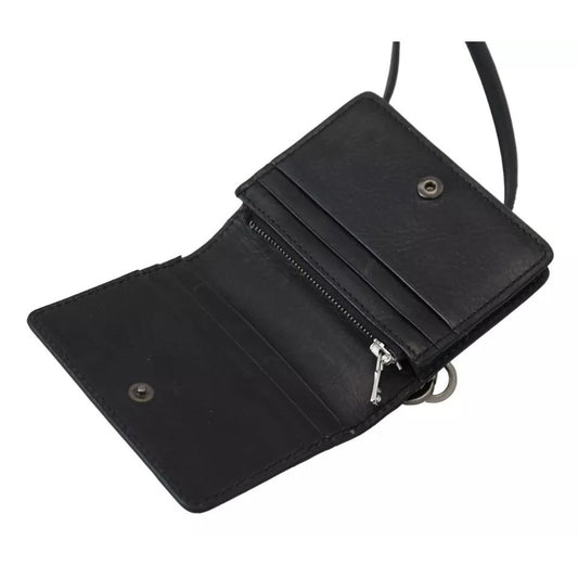 Dolce & Gabbana Black Leather Bifold Shoulder Sling Women Wallet