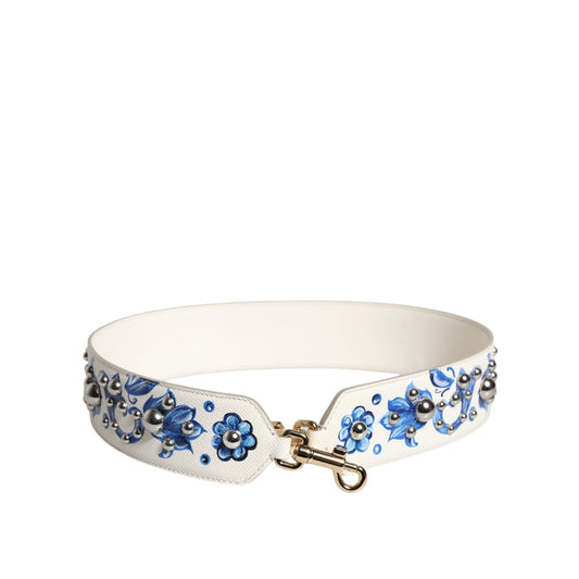 Dolce & Gabbana White Blue Floral Leather Stud Shoulder Strap