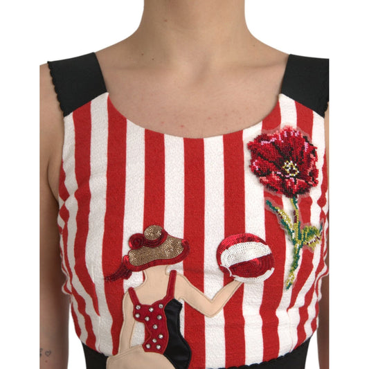 Dolce & Gabbana Red White Floral Sleeveless Sheath Midi Dress