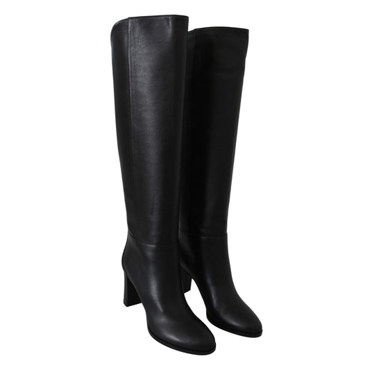 Dolce & Gabbana Black Suede Leather Knee High Boots Shoes