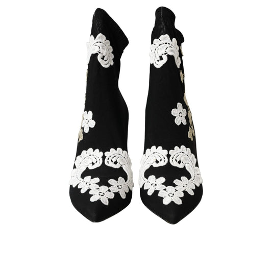 Dolce & Gabbana Black Floral Stretch Mid Calf Boots Shoes