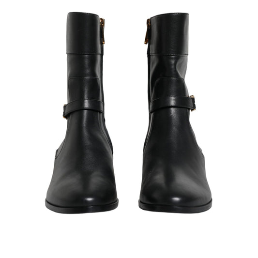 Dolce & Gabbana Black Leather Buckle Mid Calf Boots Shoes
