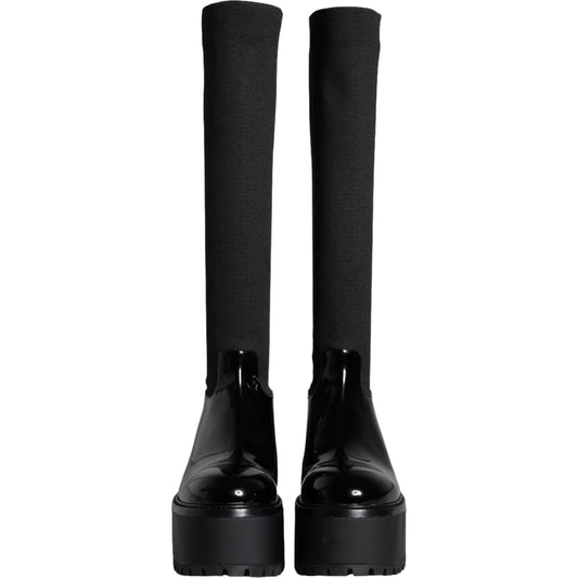 Dolce & Gabbana Black Rubber Knee High Flat Boots Shoes