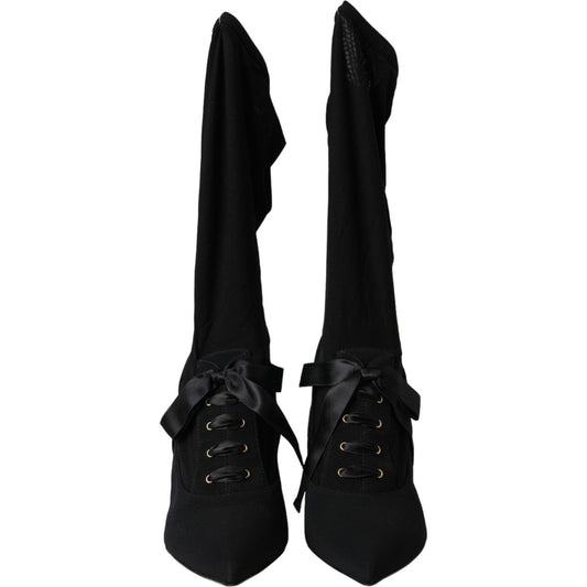 Dolce & Gabbana Black Stretch Socks Taormina Lace Boots Shoes