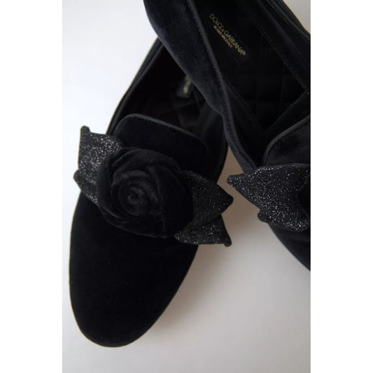 Dolce & Gabbana Black Velvet Crystals Loafers Flats Shoes