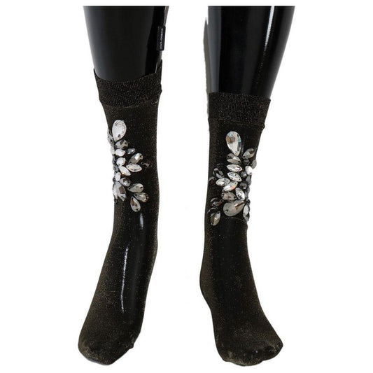 Dolce & Gabbana Black Knit Floral Crystal Embellishment Socks