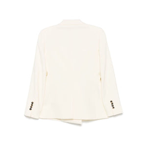 white virgin wool blend interlock twill weave double-breasted button fastening peak lapels shoulder pads long sleeves buttoned cuffs chest welt pocket two front flap pockets American rear vent full lining straight hem Wool double-breasted jacket Size and Fit - This piece fits true to size. We recommend you get your regular size. Model is 1,75m / 5ft 8in wearing size 40 (IT)