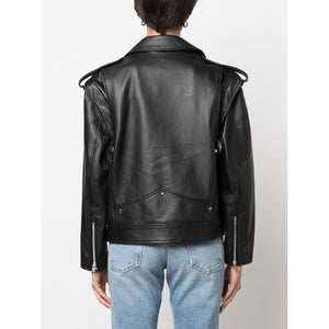 black lambskin grained texture silver-tone hardware wide notch lapels off-centre front zip fastening long sleeves straight hem cuff zips zip-fastening chest pocket two side zip-fastening pockets coin pocket Leather biker jacket Size and Fit - This piece fits true to size. We recommend you get your regular size. Model is 1,75m / 5ft 8in wearing size 40 (IT)