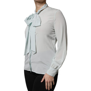 Ballantyne Light Blue Silk Ascot Collared Long Sleeves Top