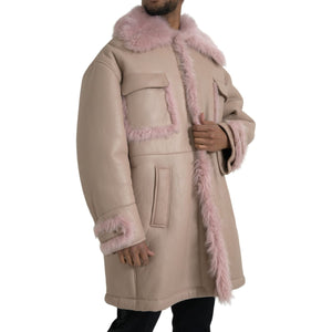 Dolce & Gabbana Beige Pink Lamb Leather Shearling Coat Jacket