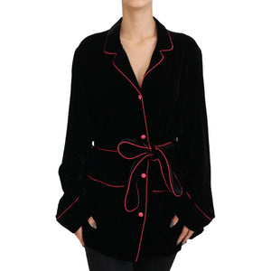 Dolce & Gabbana Black Button Belted Blazer Viscose Jacket
