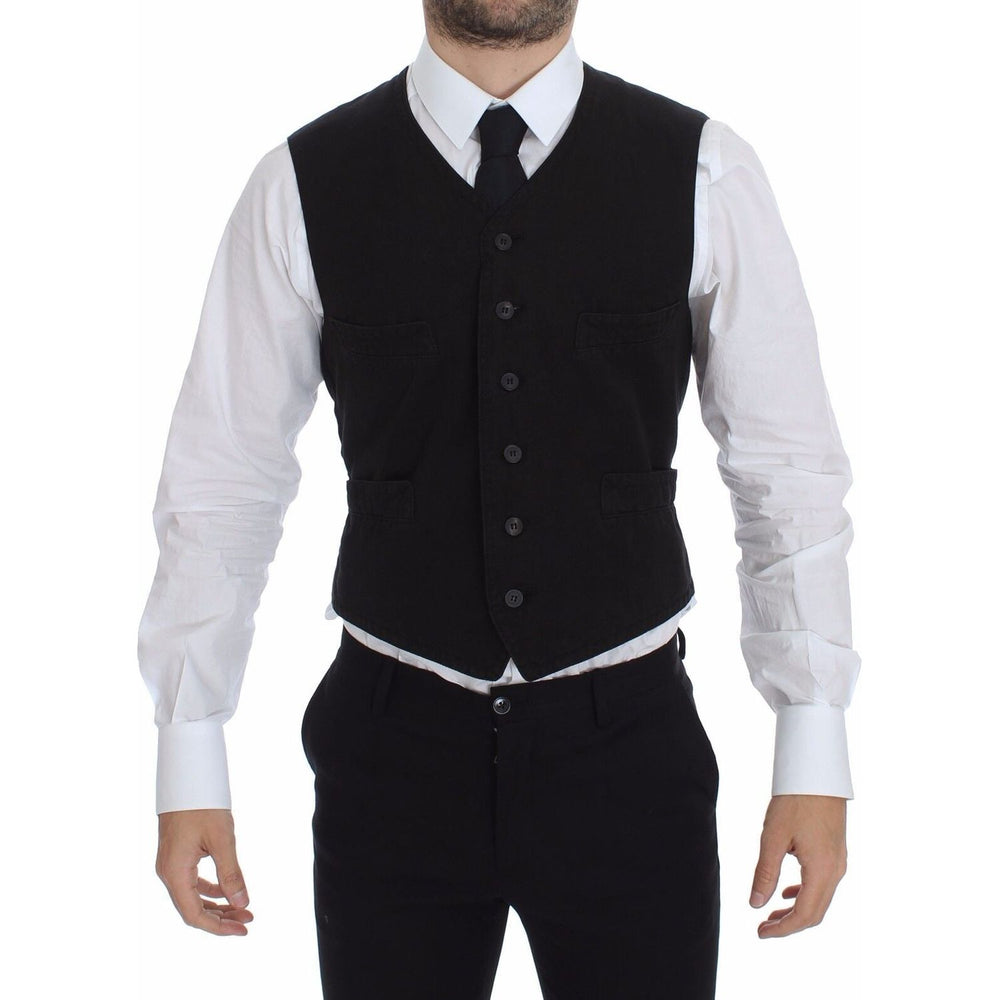 Absolutely stunning, 100% Authentic, brand new with tags Dolce & Gabbana black cotton and flax blend Dress Vest. This item comes from the MainLine Dolce & Gabbana collection.