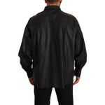 Dolce & Gabbana Black Leather Button Down Men Collared Jacket