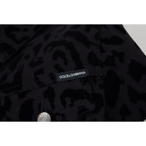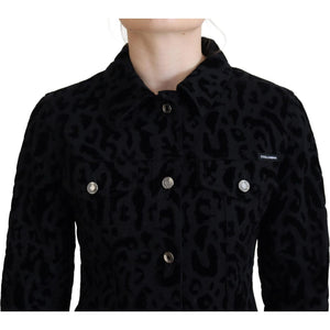 Dolce & Gabbana Black Leopard Long Sleeve Denim Cotton Jacket
