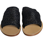 Dolce & Gabbana Black Monochrome Braided Raffia Slides Shoes