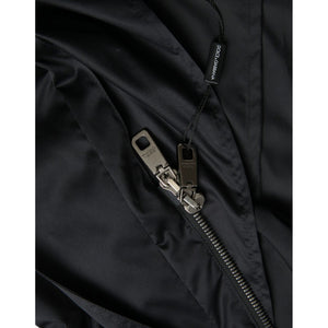 Dolce & Gabbana Black Polyester Hooded Long Windbreaker Jacket