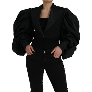 Dolce & Gabbana Black Polyester Puffed Sleeves Cropped Jacket