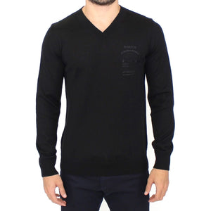 Ermanno Scervino Black Wool Blend V-neck Pullover Sweater