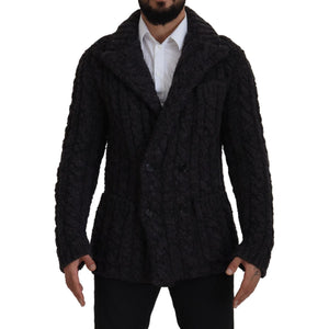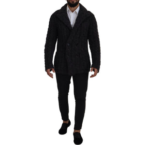 Dolce & Gabbana Black Wool Knit Double Breasted Coat Jacket