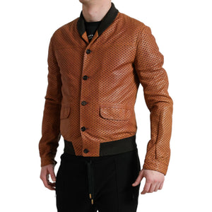 Dolce & Gabbana Brown Lambskin Leather Perforated Jacket