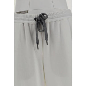 Brunello Cucinelli’s cotton Sweatpants combine comfort and sophistication with a versatile design suitable for a variety of occasions. The palazzo style offers a loose, flowing silhouette, while the elasticated waistband, adjustable via a contrasting drawstring, ensures a comfortable and customizable fit. The two American-style side pockets add a practical and elegant touch, while patch pockets on the back complete the design with a functional detail. The monochrome pattern makes these pants easy to match with any outfit, and the regular fit ensures comfort without sacrificing style.