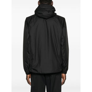 black ripstop texture padded design classic hood long sleeves elasticated cuffs two side zip-fastening pockets two side slit pockets logo print to the side high-low hem front two-way zip fastening Hooded padded jacket Size and Fit - This piece fits true to size. We recommend you get your regular size. Model is 1,84m / 6ft 1in wearing size M