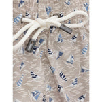 Boxer Swimsuit with Canali Sails Print. In beige with allover print in blue/light blue, elastic waist with adjustable drawstring, two side pockets and one back pocket with flap, internal mesh. Lightweight technical fabric for quick drying.