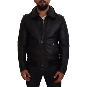 Dolce & Gabbana Black Lamb Leather Collared Men Coat Jacket