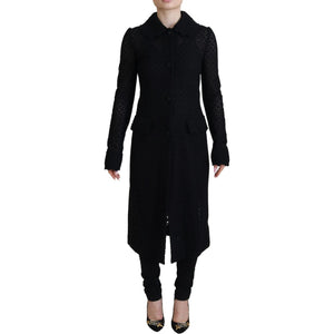 Dolce & Gabbana Black Button Down Long Blazer Cotton Jacket