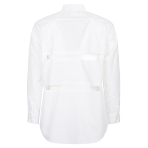 White shirt, long sleeves, pointed collar, front button closure and perforated details. Cotton overshirt Size and Fit - This piece fits true to size. We recommend you get your regular size. Model is 1,84m / 6ft 1in wearing size M