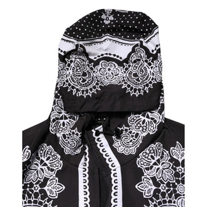 Dolce & Gabbana Black Bandana Print Hooded Bomber Jacket