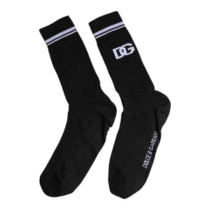 Dolce & Gabbana Black Cotton Logo Mid Calf Men Socks