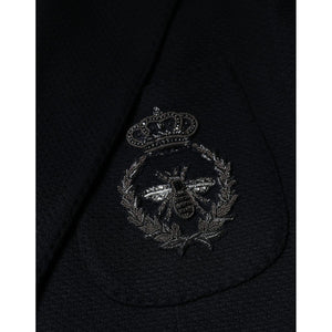 Dolce & Gabbana Black Crown Bee Single Breasted Coat Blazer