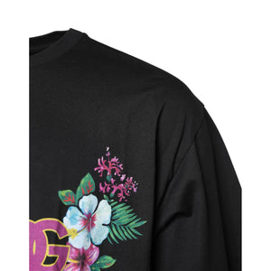 Dolce & Gabbana Black DG Floral Print Crew Neck T-shirt