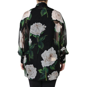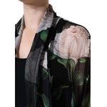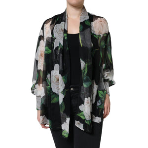 • Dolce & Gabbana Black Floral Print Silk Cardigan Blouse Top